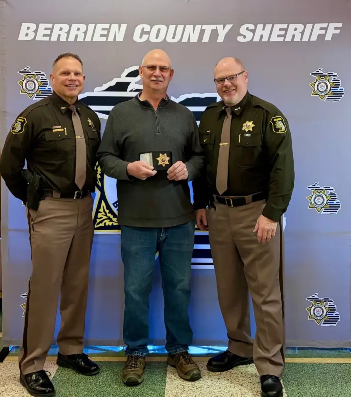 Deputy Cameron Neubecker received a commendation for his actions on November 7 when he helped rescue a man having a mental health episode in Watervliet. Sanders said the man jumped into the Paw Paw River in cold temperatures and refused to come out.