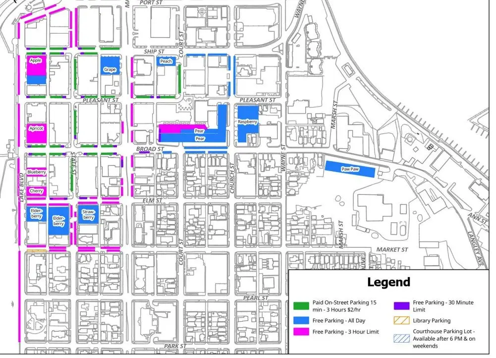 Ewalt says there will be a few paid spots on the east side of Main Street this year, namely along Pleasant and Court Streets.